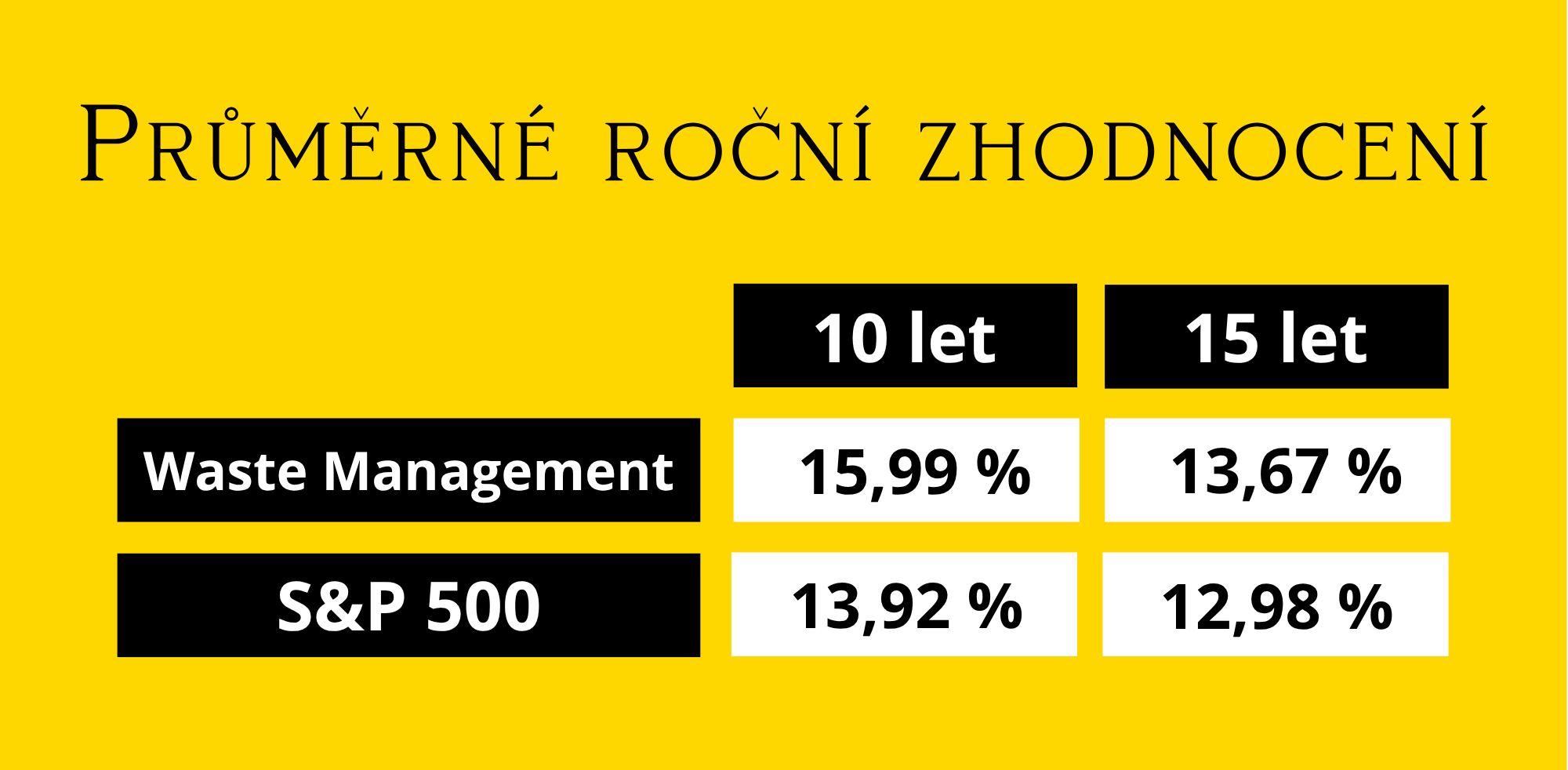 Další společností, která má ukázkovou konkurenční výhodu, je Waste Management. Na první pohled obyčejná firma, která se v Severní Americe zabývá nakládáním s odpady. A přesto, nebo možná spíš díky tomu, stabilně poráží index S&P 500.