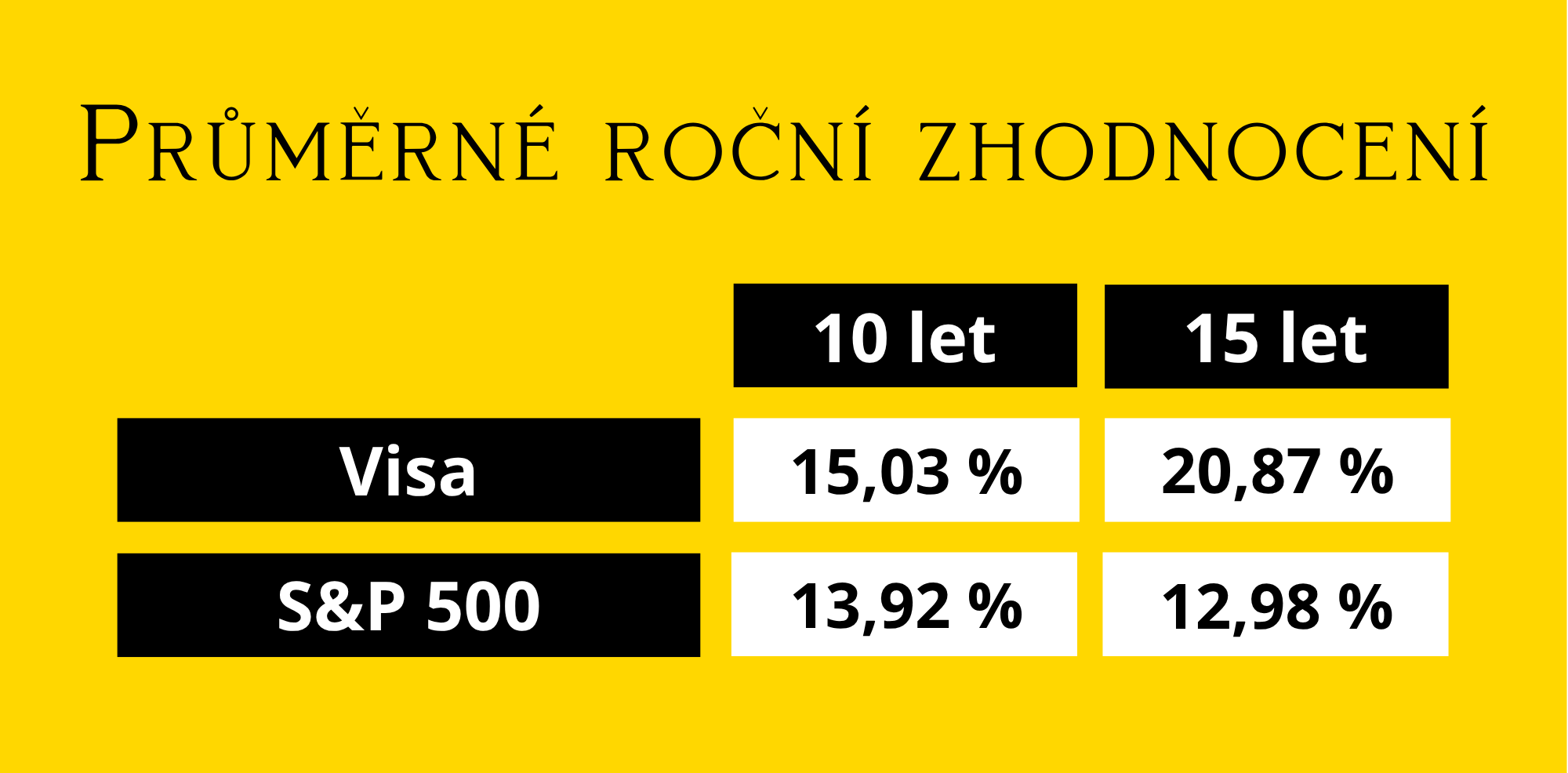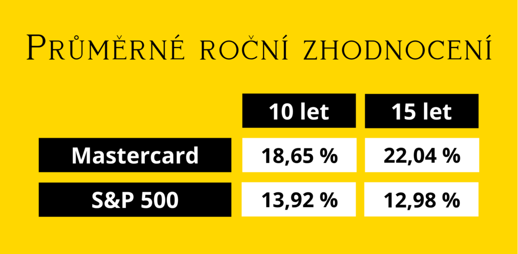 Na poslední místo nenápadných, svým způsobem možná nudných, ale mimořádně výkonných byznysů jsem tentokrát výjimečně zvolila dvě firmy, jedničku a dvojku finančního světa – karetní společnosti Visa a Mastercard. Obě dvě totiž úspěšně dlouhodobě nechávají index S&P 500 za sebou.